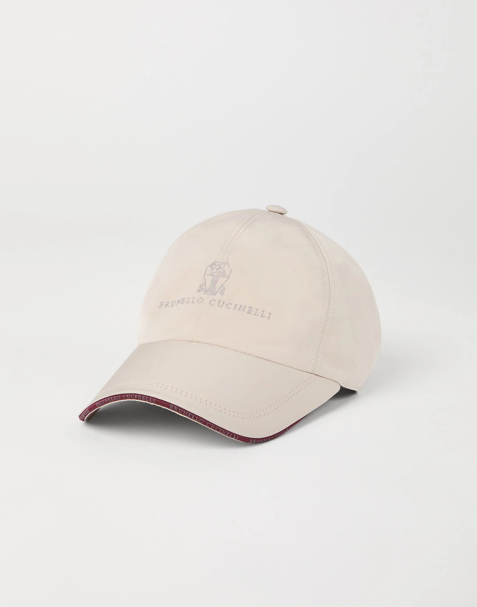 The sporty, technical appearance of water-resistant microfiber pairs perfectly with the casual style of this Baseball cap. The accessory is completed by the Solomeo crest detail embroidered on the front. MATERIALS A refined Japanese fabric, microfiber is crafted from a polyamide core wrapped in strands of polyester. Special processing gives the surface subtle shimmer, a velvety texture and also makes the fabric very fluid and pleasant to touch. Lastly, a finish is added to help protect the fabric from light water contact. DETAILS Reinforced brim Adjustable Velcro fastening Lined 70% POLYESTER, 30% NYLON