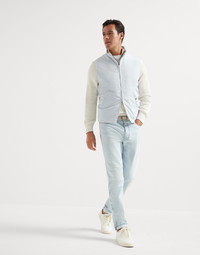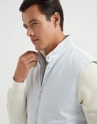 Modern, innovative materials provide function and performance to this water-resistant microfiber vest, which showcases a simple, essential silhouette. The garment incorporates the classic codes of casual outerwear, with a throat latch, zipper closure and side pockets. The surface of the fabric is smooth and silky, while the lightweight Thermore® padding on the inside provides warmth and protection. MATERIALS A refined Japanese fabric, microfiber is crafted from a polyamide core wrapped in strands of polyester. Special processing gives the surface subtle shimmer, a velvety texture and also makes the fabric very fluid and pleasant to touch. Lastly, a finish is added to help protect the fabric from light water contact. DETAILS Two-way zip closure Stand-up collar Hand pockets with snap Two interior pockets with button and pen holder Water-resistant nylon lining Thermore® padding 70% POLYESTER, 30% NYLON
