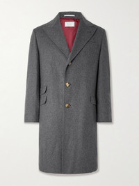 It doesn't get more classic than Brunello Cucinelli's overcoat. Lightly padded for structure, it's been made in Italy from a naturally insulating wool and cashmere-blend and is lined in red satin-twill for smooth layering. Wear yours with everything from hoodies to suits. Size & Fit - Fits true to size. Take your normal size - Tailored for a regular fit - Internal shoulder pads - Sized for layering - Mid-weight, non-stretchy fabric - Model is shown wearing an IT 48 - Model measures: chest 38"/ 96cm, height 6'1"/ 185cm Details & Care - Dark-grey melange wool and cashmere-blend - Button fastenings - 95% wool, 5% cashmere - Dry clean