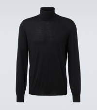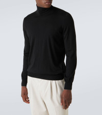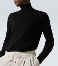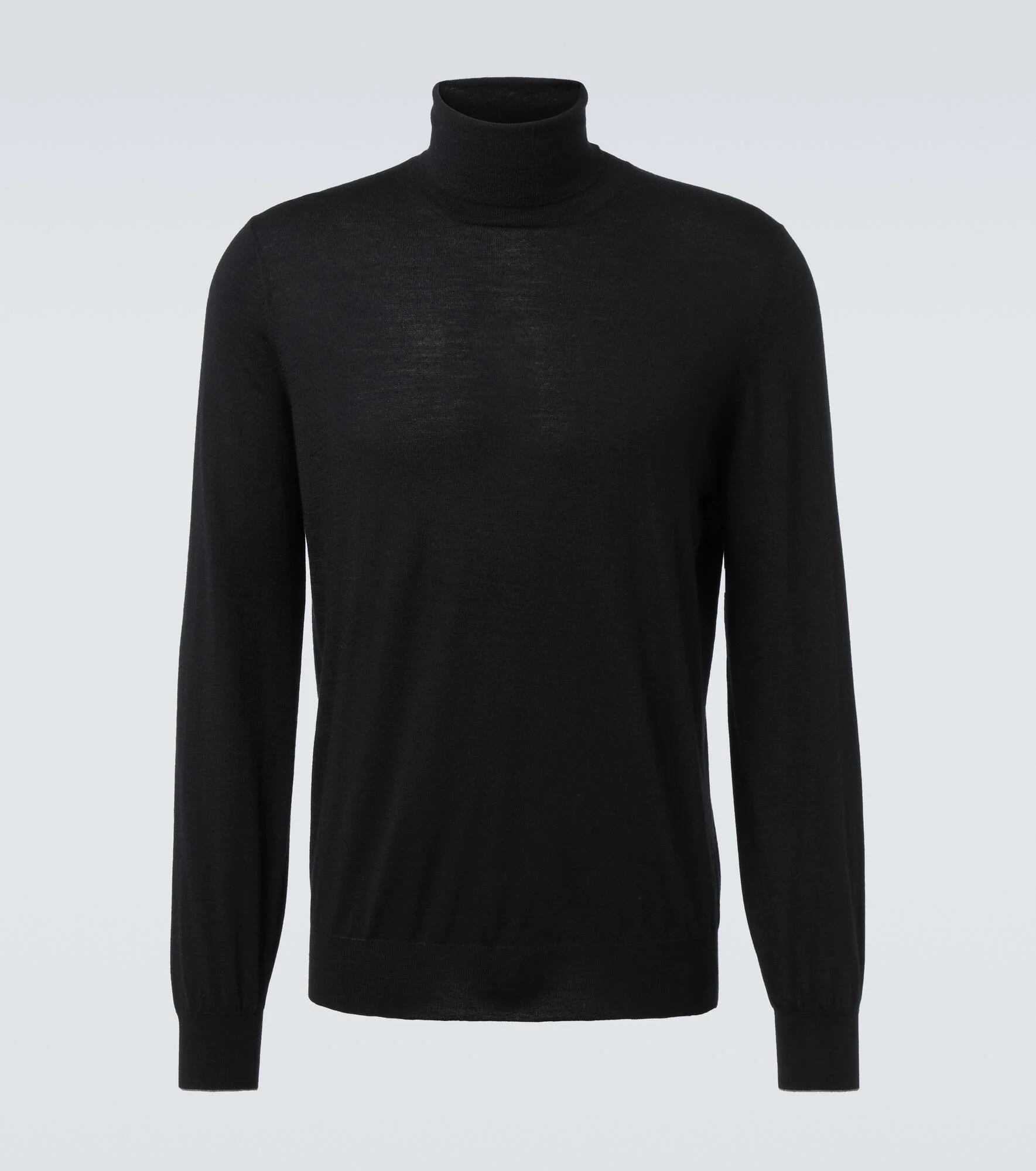 Brunello Cucinelli's designs are created in Solomeo, a medieval hamlet whose art and traditions are woven into the house's every fiber. Crafted from wool and cashmere, this turtleneck sweater featured a ribbed hem and cuffs. Product Details - Material: 90% wool, 10% cashmere - Care instructions: hand wash - Made in Italy - Designer color name: Ch101 - Item color: black - Item number: P01056026 Size & Fit - True to size - Straight fit - Stretchy fabric - Falls to the hip - Height of model is 189cm-74.5" and wears a size IT 50