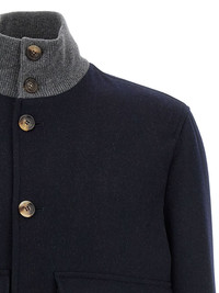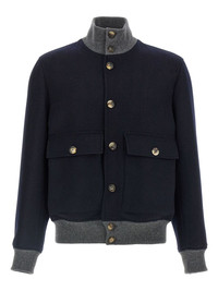 ribbed-knit wool bomber jacket Highlights - Navy blue - Wool - High neck - Button closure - Ribbed knit cuffs - Patch pockets Made in Italy Composition Lining: Cupro 100% Outer: Wool 100% Washing instructions Read Manufacturer Guidelines