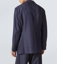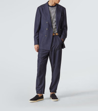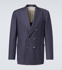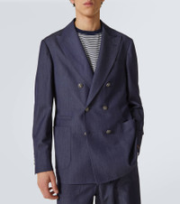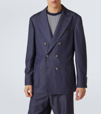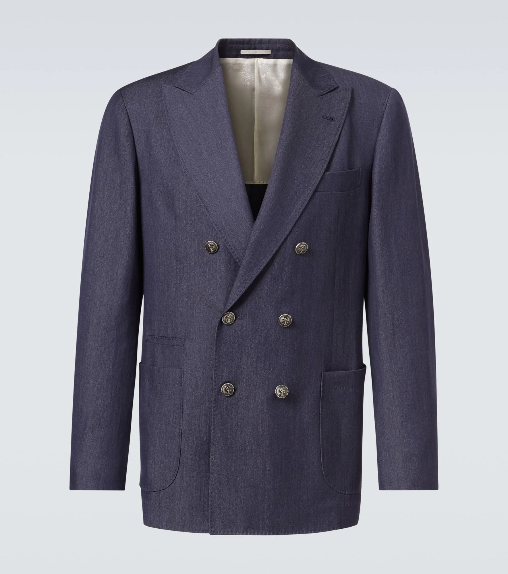 Brunello Cucinelli's designs are created in Solomeo, a medieval hamlet whose art and traditions are woven into the house's every fiber. Made from a wool, hemp, and silk blend, this double-breasted suit jacket comes with notched lapels and tonal stitching. Product Details - Material: 60% wool, 36% hemp, 4% silk - Care instructions: dry clean - Made in Italy - Designer color name: Denim - Item color: blue - Lining: 100% cupro - Contains non-textile parts of animal origin - Buttoned cuffs - Closure: double-breasted - Pockets: patch pockets - Item number: P01041847 Size & Fit - True to size - Straight fit - Non-stretchy fabric - Falls below the hip - The model in the picture is 185cm-6'1" and wearing a size IT 50