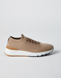 Refined Brunello Cucinelli knitwear inspires the style of these wool knit sneakers with an elegant, modern feel. The soft yarn is crafted with a jacquard technique to create a rib knit effect, while the suede accents add a texture contrast detail. A virgin wool inner lining provides added comfort and protection. MATERIALS The wool knit offers a fine, lightweight and comfortable texture. A warm virgin wool lining and an ultra lightweight EVA bottom complete the comfort of this footwear. DETAILS Flat fabric laces Wool lining Detachable insole Sole in lightweight micro rubber 100% WOOL