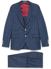striped suit Highlights - Navy blue - Front button fastening - Concealed front button, hook and zip fastening - Two side slash pockets - Two rear welt pockets Made in Italy Composition Outer: Virgin Wool 100% Lining: Cotton 100%, Viscose 100%, Acetate 60%, Cupro 40% SIZE & FIT Model measurements Height 6 ft 1 in(1.85 m) Bust/Chest 35.82 in(91 cm) Hips 37.79 in(96 cm) Waist 29.13 in(74 cm) FittingInformation Tailored for a slim fit, offering a comfortable fit that sits just away from the body The unfinished hems allow for the length to be altered Made from a midweight non-stretch fabric
