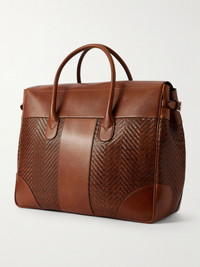 Woven Leather Weekend Bag Brown