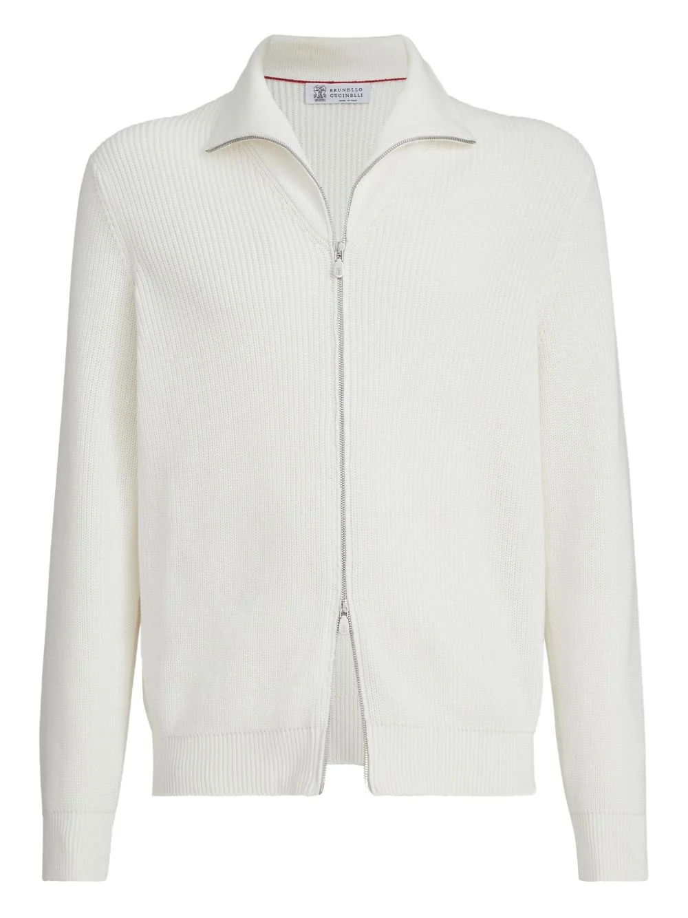 zip-fastening cardigan Highlights - White - Cotton - Zip fastening - Ribbed knit - Polo collar Made in Italy Composition Cotton 100% Washing instructions Read Manufacturer Guidelines