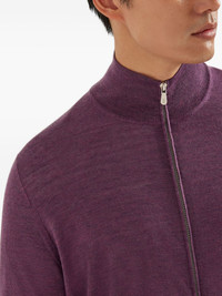 zip-up fine-knit cardigan Highlights - Burgundy red - Zip fastening - High neck - Long sleeves - Fine knit - Cashmere-silk blend Made in Italy Composition Cashmere 42%, Silk 36%, Linen/Flax 22% Washing instructions Read Manufacturer Guidelines