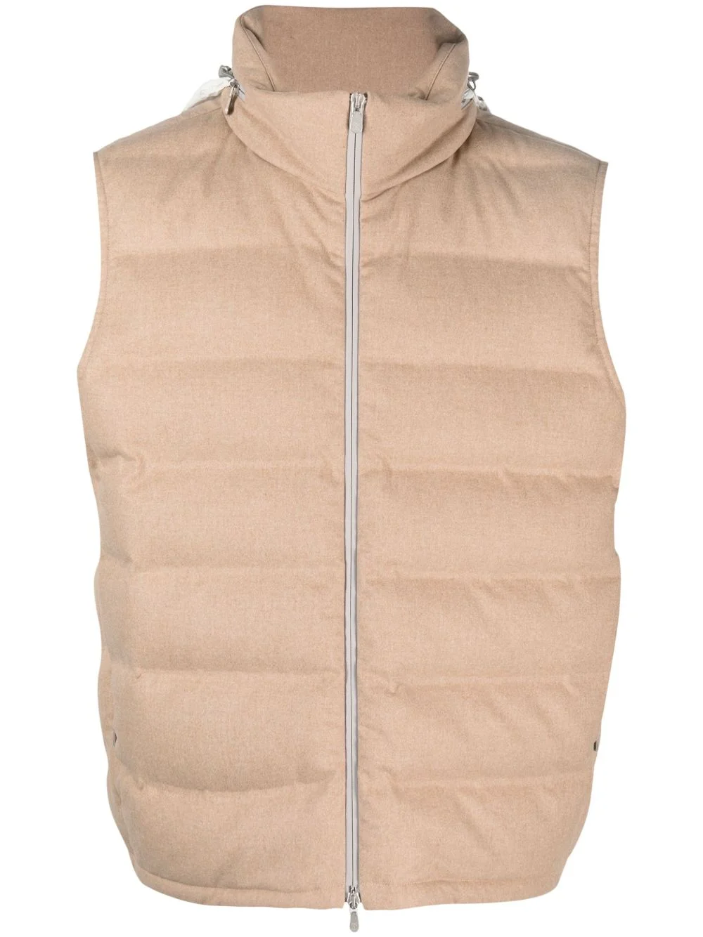 zip-up padded gilet Highlights - Sand beige - Padded design - High neck - Detachable hood - Front two-way zip fastening - Sleeveless Made in Italy Composition Outer: Wool 100% Lining: Polyamide 100% Washing instructions Dry Clean Only