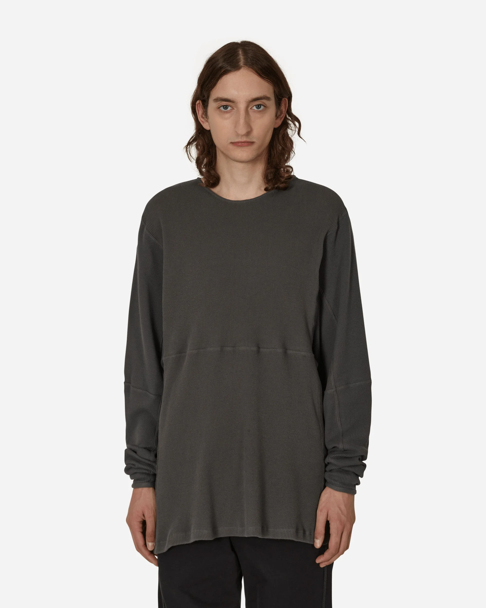 Bryan Jimenèz Body Warmer Thermal Sweatshirt Graphite Gray New York-based brand creates hybrid collections, merging high-spec techwear and streetwear staples. Every item is rooted in the contemporary landscape with an experimental approach. - 100% Cotton - Waffle Knit Fabric - Paneled Construction - Dropped Shoulders - Round Collar - Ribbed Cuffs - Made in New York - Style Code: BJFW22S-3 GRGRAY SIZE & FIT Model is 6ft 2in/1.89m with 35"/89cm chest and wears size M. Measures (Size M): 50cm Shoulders, 55cm Chest, 78cm Sleeve, 76cm Length, 65cm Hem.