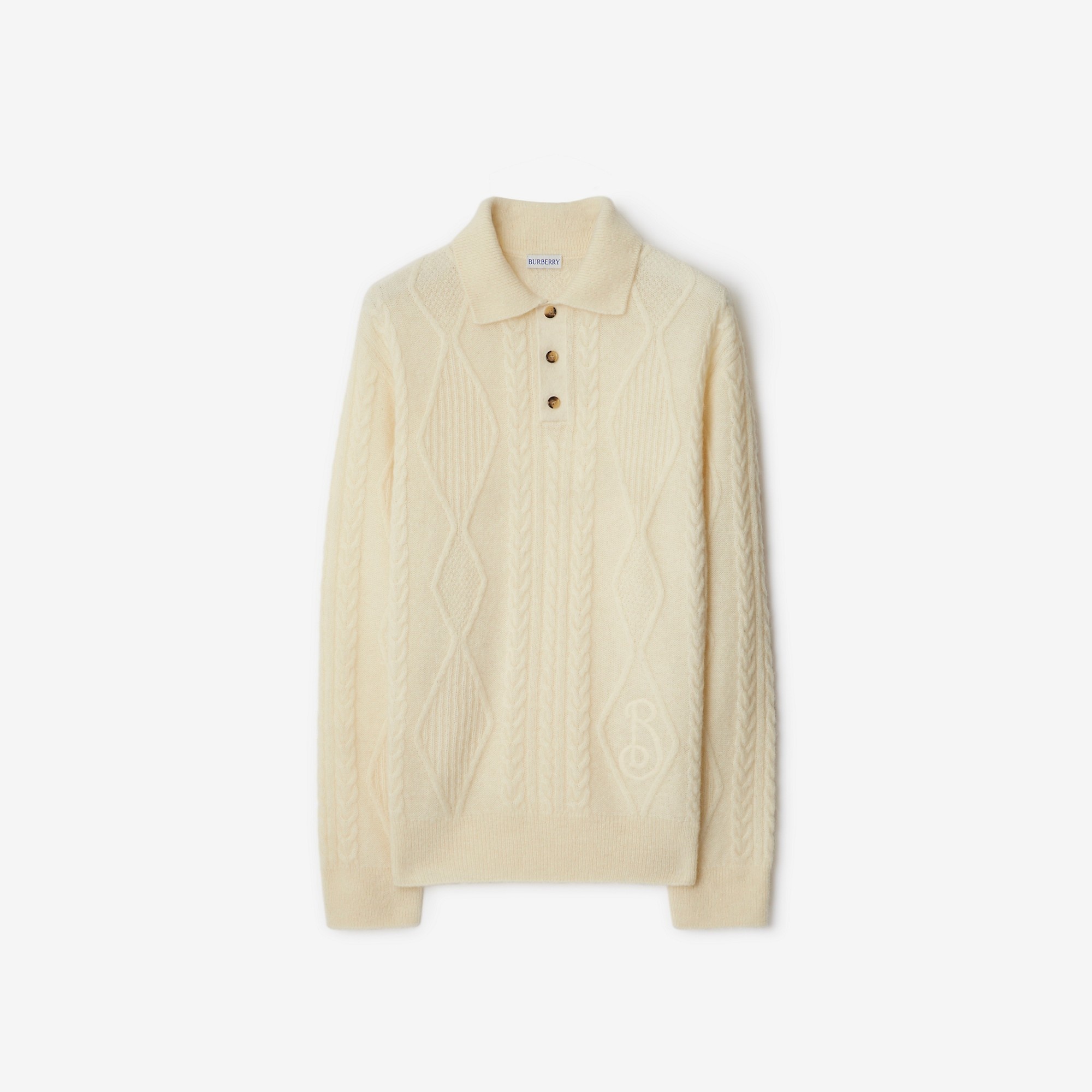 Product Details An Aran cable-knit polo shirt made in Italy from a soft wool and alpaca wool blend. The loose open stitch gives it a lightweight feel. The style is cut to a relaxed fit and is embroidered with a B shield, a motif inspired by the Equestrian Knight Design. - Button placket - Rib-knit trims - Embroidered B shield at front - Relaxed fit: a looser cut than our regular fit. Consider taking a size down. - Item 80979691 Size & Fit - Length: 70cm/27.6in (size UK L) - Model’s height: 188cm/6ft 2in. Model wears size UK L Fabric & Care - 37% alpaca wool, 34% wool, 29% polyamide - Trims: 37% alpaca wool, 33% wool, 29% polyamide, 1% elastane; 36% polyamide, 33% alpaca wool, 30% wool, 1% elastane - Specialist dry clean - Made in Italy
