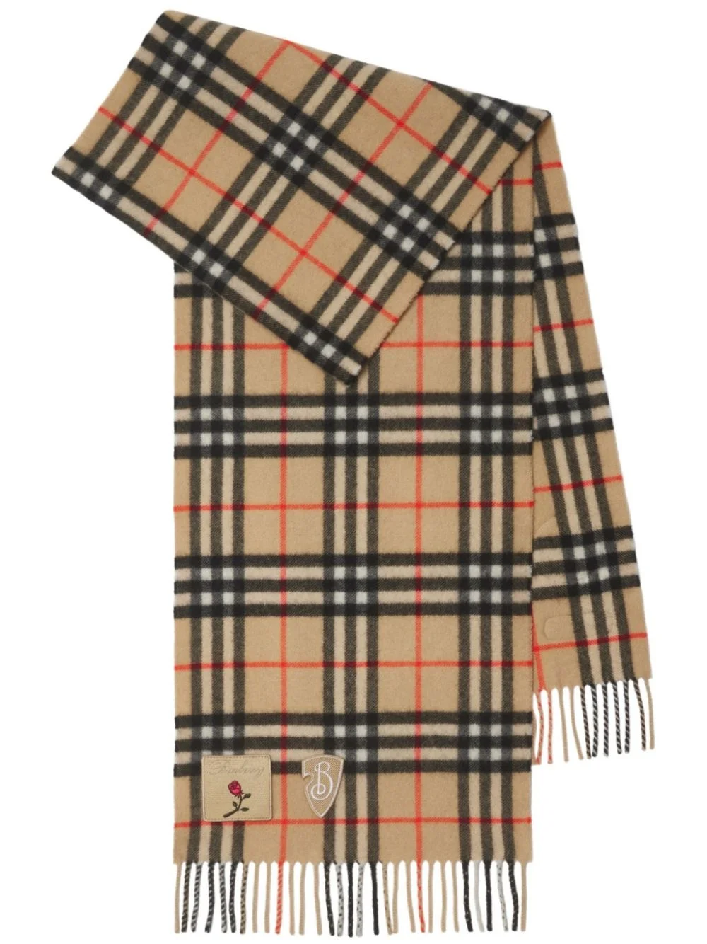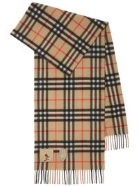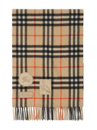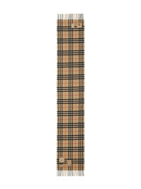 Badge Vintage Check scarf Highlights - Beige/multicolour - Cashmere - Knitted construction - Vintage check pattern - Badge detailing - Fringed edge - Wraparound style - Rectangle shape Made in United Kingdom Composition Cashmere 100% SIZE & FIT Measurement LENGTH 66.14 in(168 cm) WIDTH 11.81 in(30 cm) Washing instructions Dry Clean Only