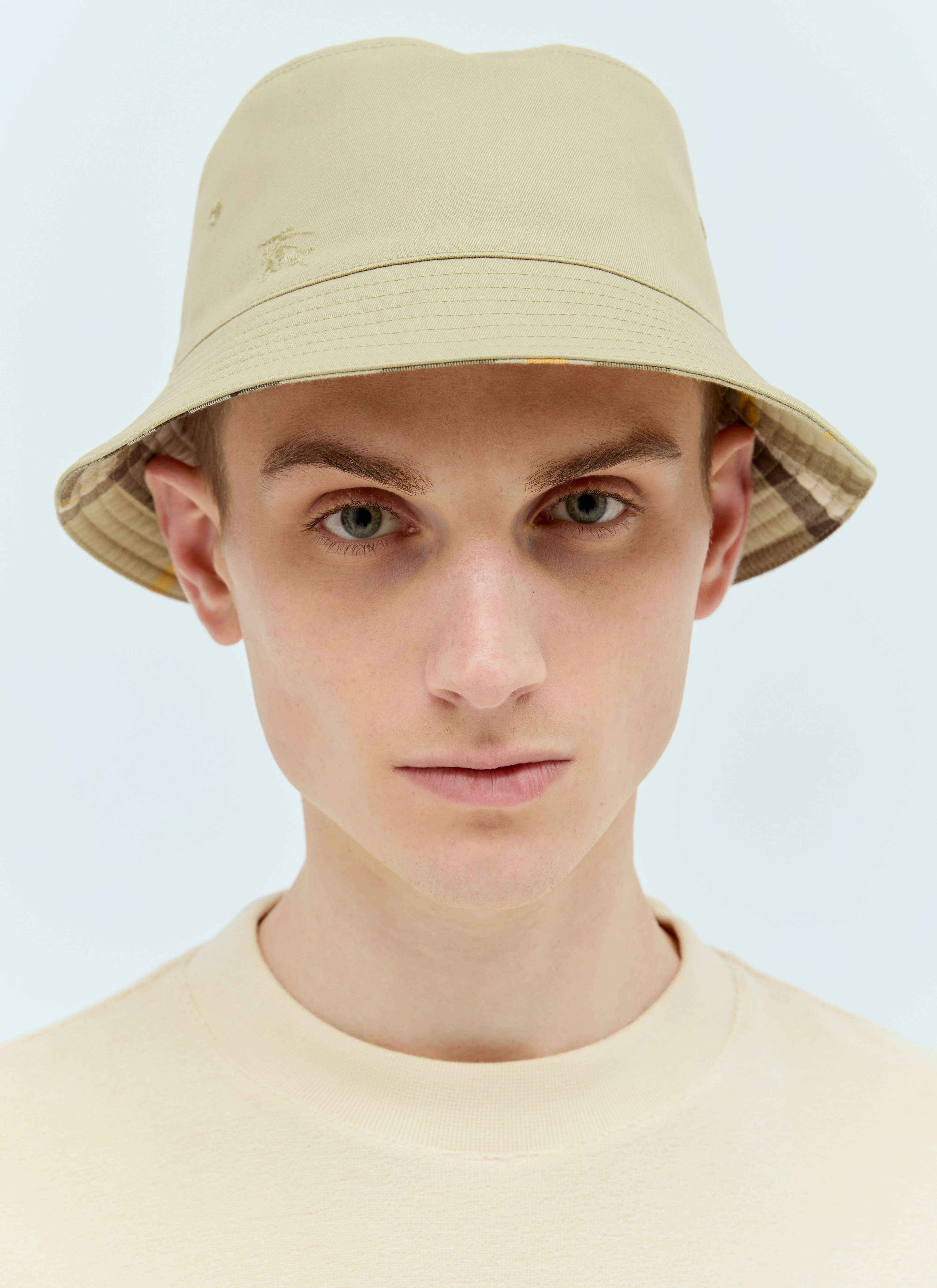 Reversible bucket hat in twill weave with Check motif at reverse. - Flat cown - Dropped quilted brim - EKD embroidery - Reversible construction - Made in Italy - 65% Polyester, 35% Cotton - Color: Beige - Code: 8082573 B7311