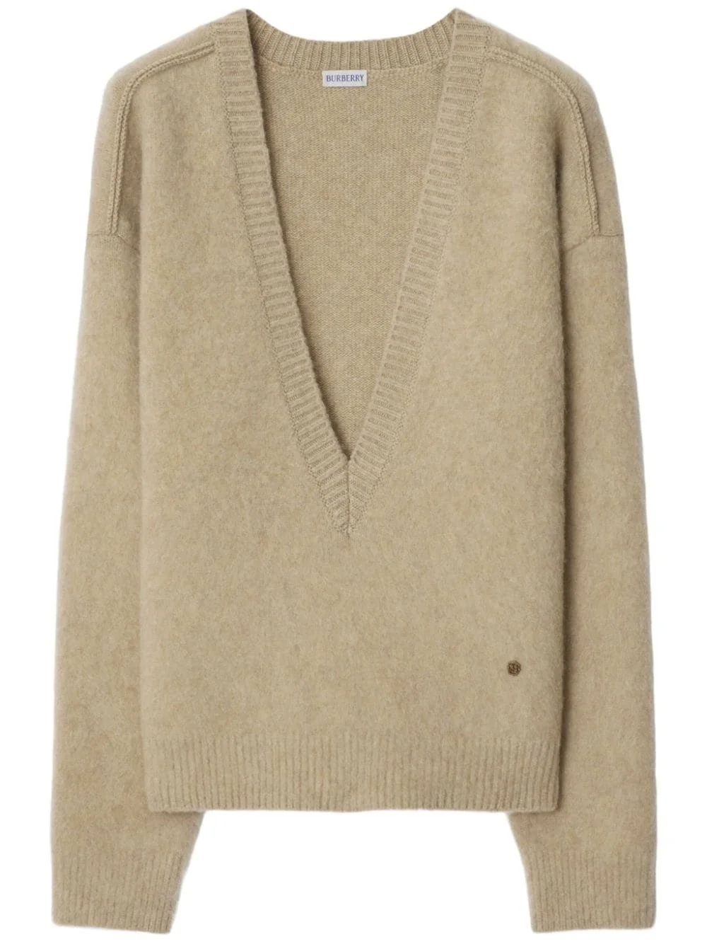 plunging V-neck jumper Highlights - Sand beige - Cashmere - Fine knit - Logo plaque - Plunging v-neck - Ribbed cuffs and hem Made in Italy Composition Cashmere 100%, Wool 100%