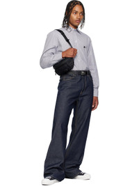 Reversible buffed calfskin belt. Reverse in beige saffiano faux-leather. Check pattern throughout. · Logo plaque at post-stud fastening · Silver-tone hardware · W1" Supplier color: Sand/Black Calfskin, synthetic. Made in Italy 252376M131006