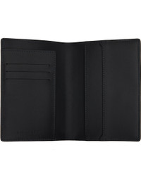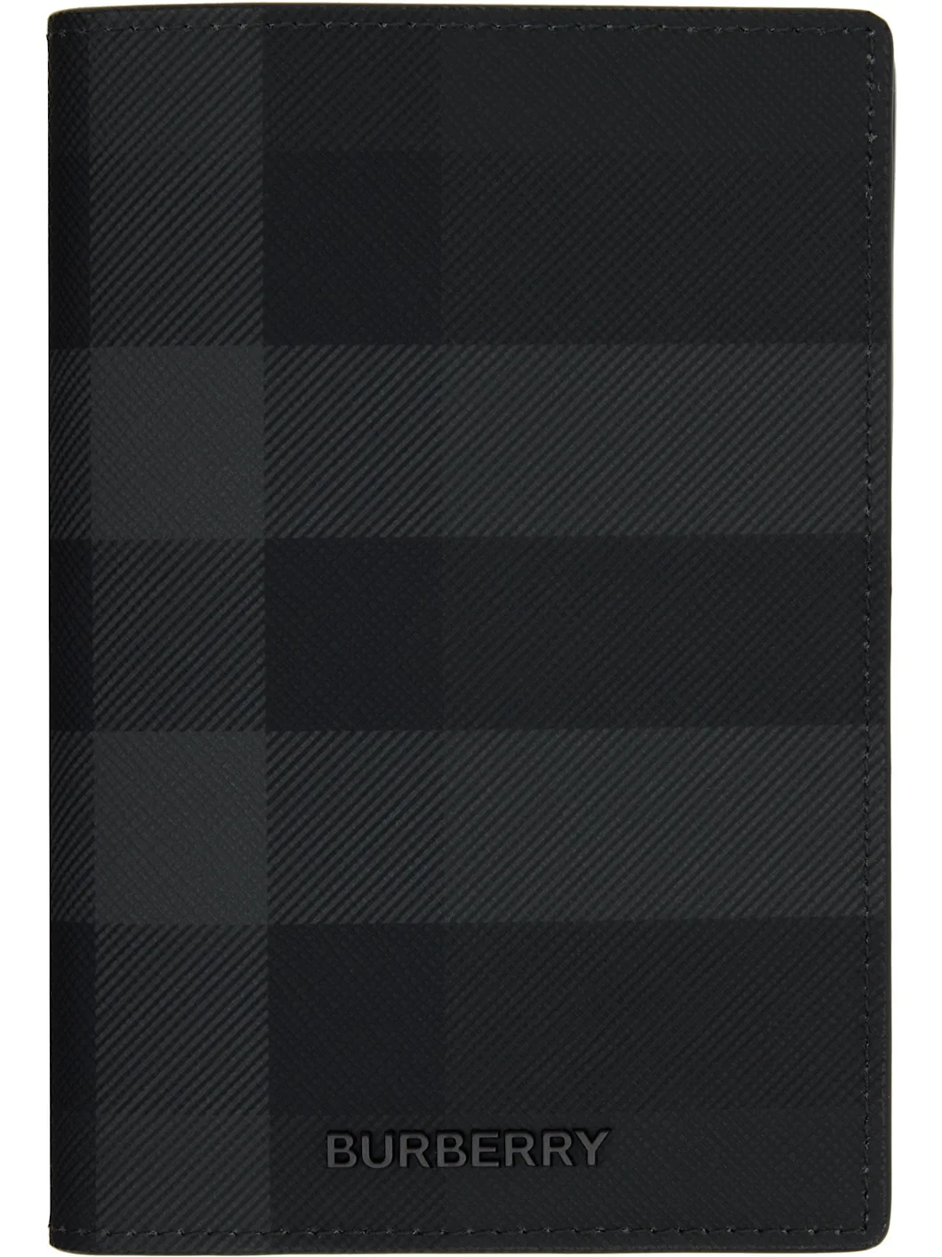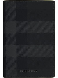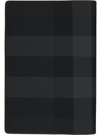 Coated canvas passport holder in black. · Check pattern and hand-painted edges throughout · Logo hardware at face · Three card slots at interior · Two patch pockets · One passport slot · Buffed calfskin and twill lining · H5.5" x W3.75" x D0.75" Supplier color: Charcoal Body: 7% thermoplastic polyurethane, 30% cotton. Lining 1: 100% calfskin. Lining 2: 100% polyamide. Made in Moldova 252376M162000