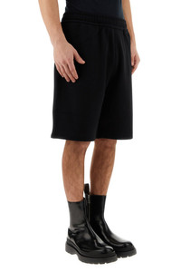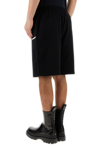 Bermuda shorts realized in pure cotton characterized by contrasting logoed print at the front. - Elastic waist with inner drawstring - Seam pockets and a slit pocket at the back DETAILS Black cotton bermuda shorts Exterior: 100% Cotton Made in china Model is 183 cm and is wearing a size M