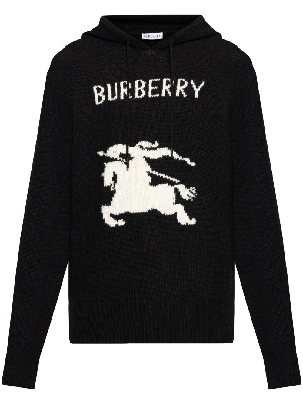 EDK hoodie Highlights - Black - Drawstring hood - Ribbed trim - Intarsia knit Made in Italy Composition Wool 72%, Cashmere 28%