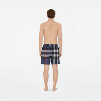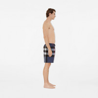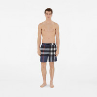 Product Details Drawcord swim shorts woven with the Burberry Check. The style is cut to a relaxed fit and lined in mesh. - Elasticated drawcord waist - Side slip pockets, back zip pocket - Mesh lining - Relaxed fit: a looser cut than our regular fit. - Machine wash - Item 81126851 Size & Fit - Inside leg length: 19.5cm/7.7in (size UK M) - Model’s height: 187cm/6ft 2in. Model wears size UK M Fabric & Care - Outer: 100% polyester - Lining: 100% polyester - Imported