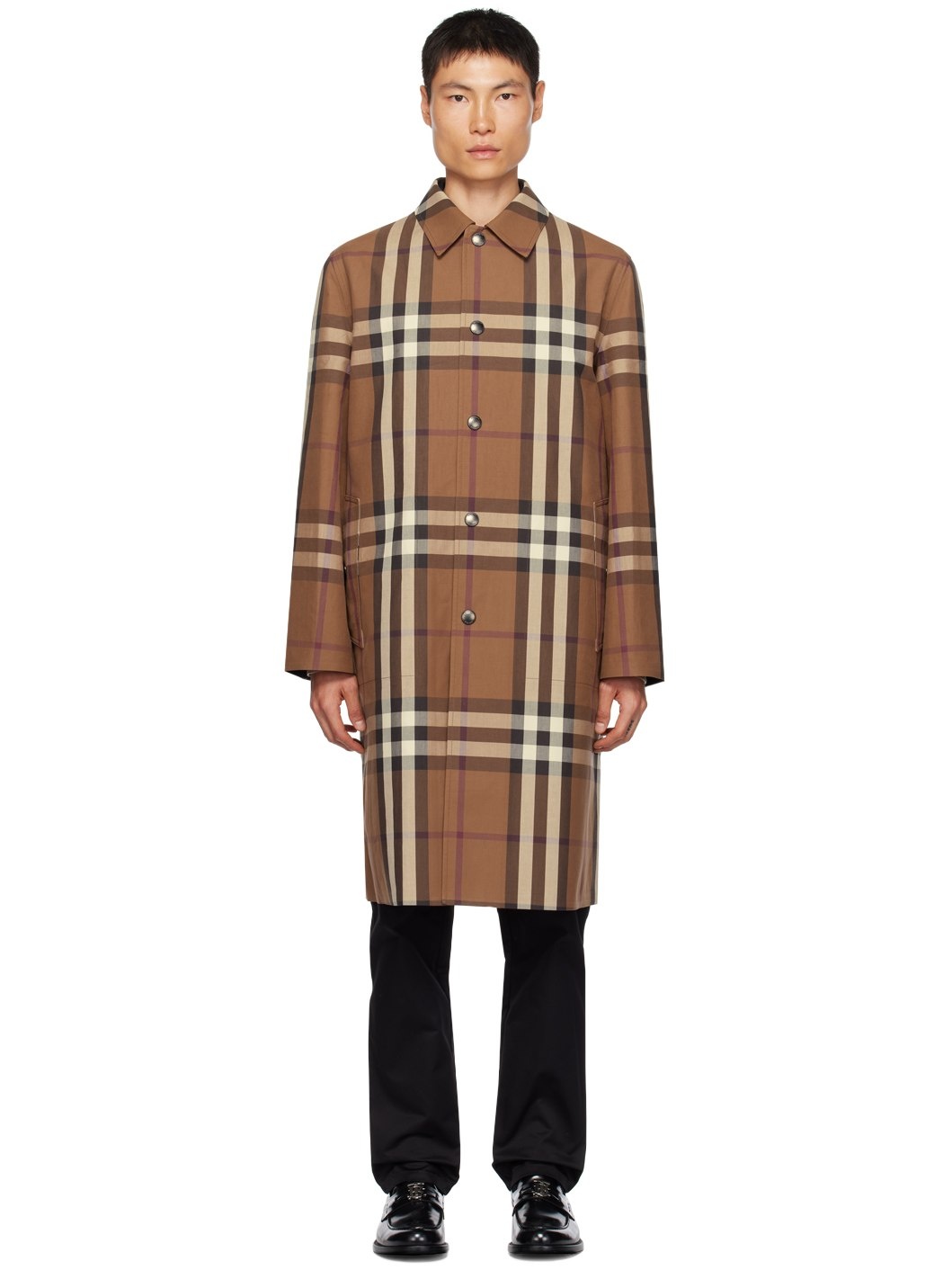 Cotton poplin coat. Check pattern throughout. · Spread collar · Press-stud closure · Welt pockets · Locker loop at back collar · Central press-stud vent at back hem · Patch pockets at interior · Unlined · Logo-engraved black hardware Supplier color: Dark birch brown