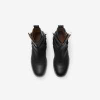 Product Details Country pursuits inform our Ledger jodphur boots, an ankle-length shape made in Italy from smooth calf leather. Debuted on the Burberry Winter 2025 runway, the equestrian-inspired style features pull tabs and a B buckle strap with an antique finish. Our Equestrian Knight Design is moulded at the sole in signature Knight Blue. - Rounded toe - Equestrian Knight Design at sole - Engraved Burberry lettering at buckle - Comes with a dust bag - Item 81143741 Size & Fit - Length from top of heel to top of boot: 20.5cm/8.1in. Top circumference: 23cm/9.1in Fabric & Care - Upper: 100% calf leather - Trim: 52% zinc alloy, 42% brass, 6% copper - Lining: 95% calf leather, 5% goat suede - Sole: 70% calf leather, 30% thermoplastic polyurethane - Made in Italy