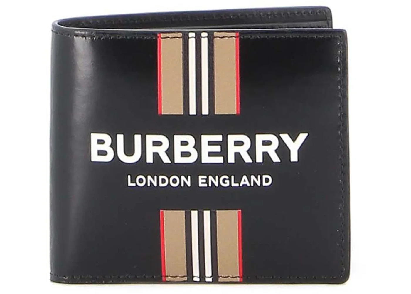 Burberry Bi-fold Icon Stripe Leather Wallet Black