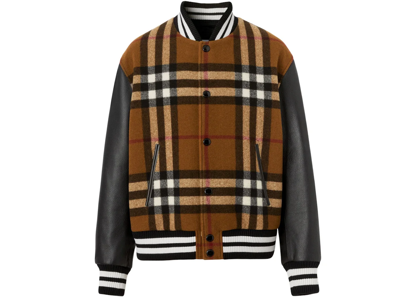 Burberry Check Technical Wool And Leather Bomber Jacket Birch Brown