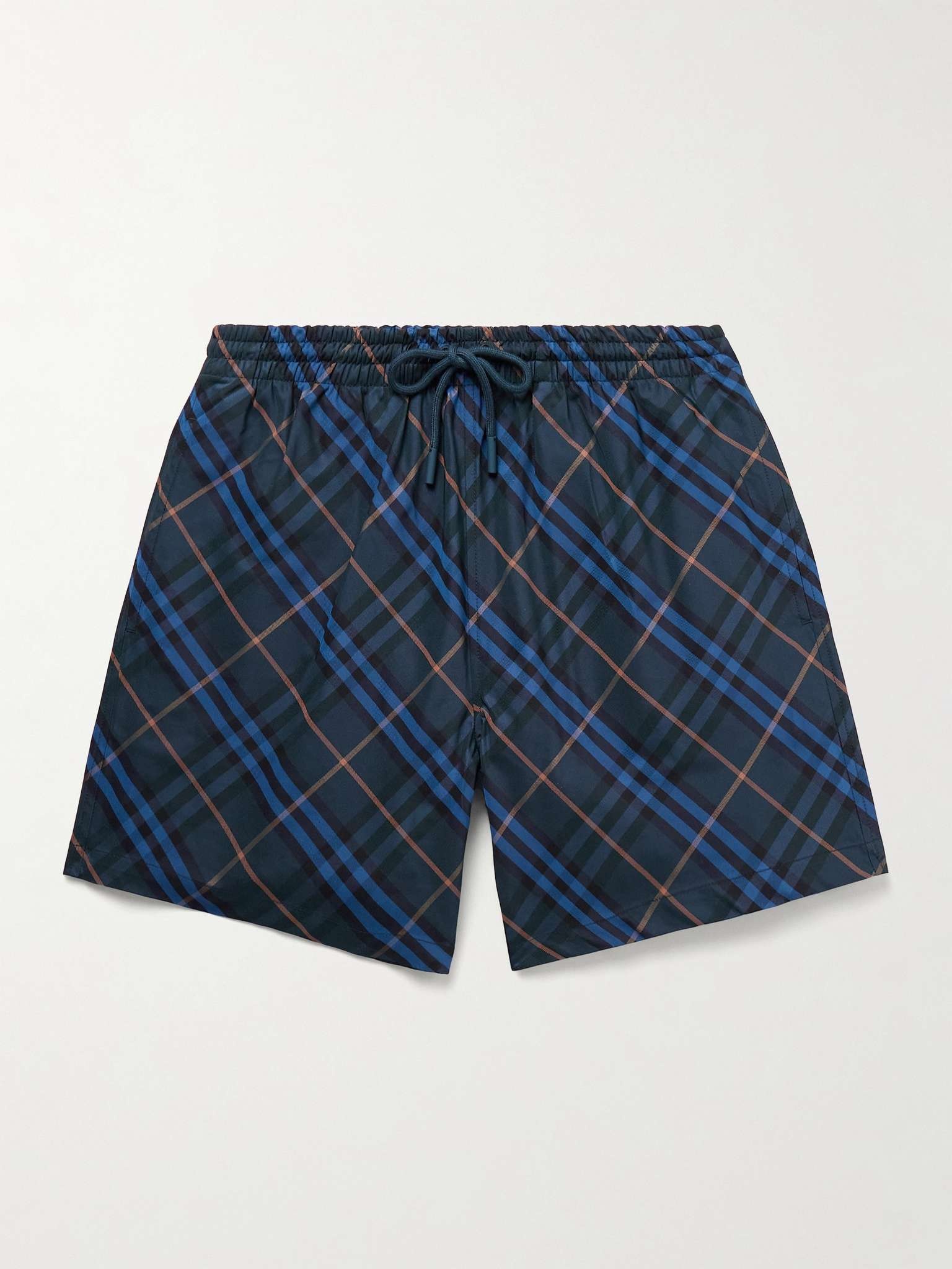 Straight-Leg Mid-Length Checked Swim Shorts