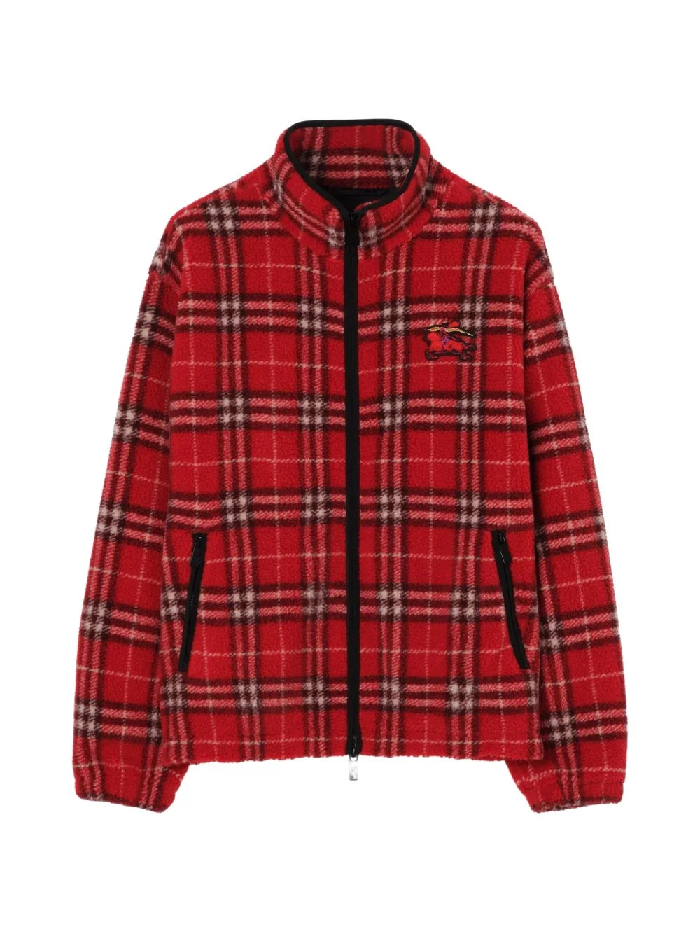 check funnel-neck fleece jacket Highlights - Red - Check pattern - Zip closure - Side zip pockets - Drawcord hem - Elasticated cuffs - Embroidered design Imported Composition Outer: Wool 50%, Polyester 40%, Cashmere 10% Lining: Polyester 100% Washing instructions Read Manufacturer Guidelines