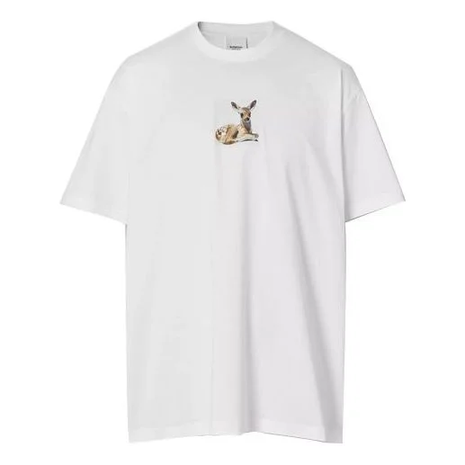 Burberry Deer Print Cotton Oversized Deerlet Printing Male White 80223701