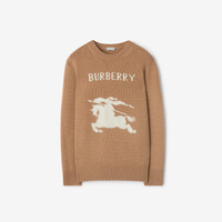Product Details An Italian-made sweater in heavyweight wool cashmere, knitted with a contrasting Equestrian Knight Design and logo. The crew-neck style is cut to a regular fit. - Rib-knit trims - Knitted Burberry lettering at front - Regular fit. Fits true to size, take your normal size. - Item 81156421 Size & Fit - Length: 68cm/26.8in (size UK L) - Model’s height: 188cm/6ft 2in. Model wears size UK L Fabric & Care - 71% wool, 29% cashmere - Trim: 70% wool, 28% cashmere, 1% elastane, 1% polyamide - Specialist dry clean - Made in Italy
