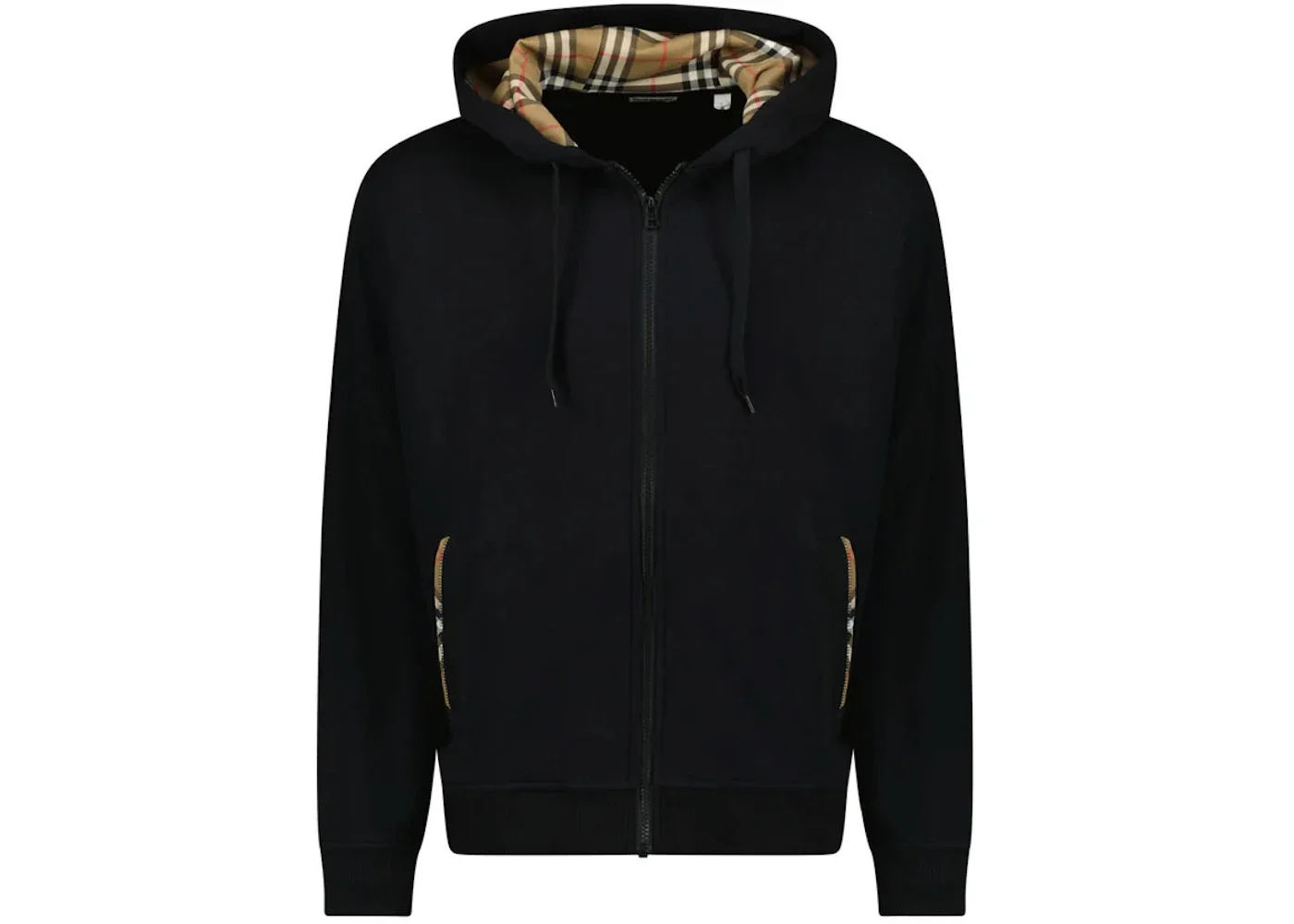 Burberry Keira Cotton Zip Up Check Hoodie Black