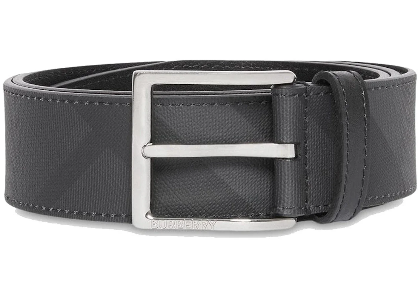 This Italian-made belt features Burberry’s signature London check pattern reworked and brass-tone buckle.Please Note: Dust bag and box are not required for this accessory. - Dimensions 1.6W - Material Thermoplastic Polyurethane - Retail Price 310 - Color Dark Charcoal/Black - Hardware Brass-tone - Style 80155781 - Base Model Belt - Base Model Variety London Check and Leather - Color Generic Black - Featured false - Interior Color Black Leather - Styles Belt - Width 1.6