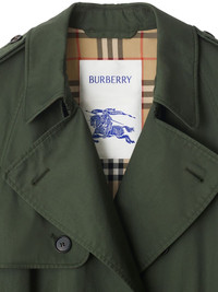 babardine trench coat Highlights - Dark green - Double-breasted button fastening - Two side flap pockets - Belted cuffs - Detachable and adjustable waist belt Made in United Kingdom Composition Lining: Viscose 100%, Cotton 100% Outer: Cotton 100%, Buffalo Horn 100%, Calf Leather 100%