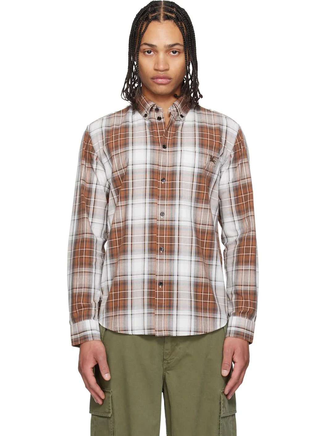 Cotton flannel shirt. · Check pattern throughout · Button-down spread collar · Button closure · Patch pocket with embroidered logo at chest · Shirttail hem · Buttoned barrel cuffs · Mother-of-pearl hardware Supplier color: Russet brown 100% cotton. Made in Viet Nam 261376M192014