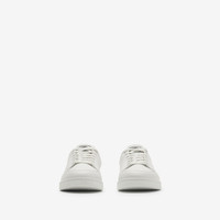 Product Details Our new signature sneaker, the Set is a minimalist style designed for everyday luxury. The low-top shape is made in Italy from smooth leather and knitted with a Burberry Check cuff in signature sand beige. A suede badge at the tongue is outlined with our Equestrian Knight Design and logo. - Lace-up closure - Equestrian Knight Design at sole - Comes with a dust bag - Item 81188501 Fabric & Care - Upper: 75% leather, 13% polyamide, 6% calf suede, 4% polyurethane, 2% elastane - Trim: 100% polyester - Lining: 50% calf leather, 50% leather - Sole: 100% rubber - Made in Italy