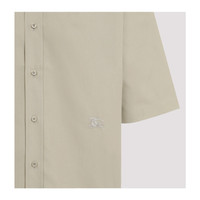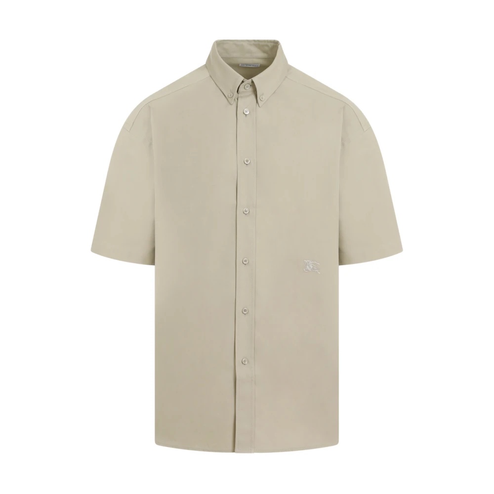 Elevate your casual style with this Burberry Hunter Green Cotton Shirt. Crafted from 100% cotton, this shirt features a classic shirt collar, short sleeves, front button fastening, straight hem, and logo embroidery on the chest. The regular fit ensures a comfortable and stylish look. Designer color: Beige Designer ID: 8081978 B7311 HUNTER Material & Care Cotton 100%COTTON