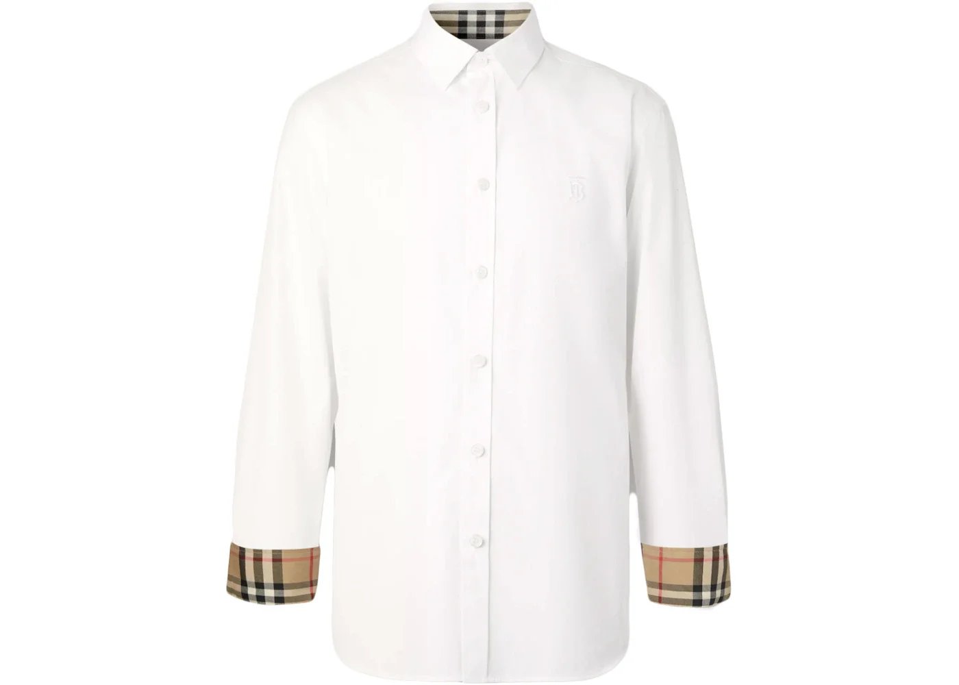 Burberry Slim Fit Monogram Motif Stretch Cotton Poplin Shirt White