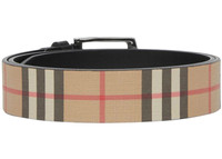 The Burberry Vintage Check And Leather Belt Archive Beige/Black is a meticulously crafted wardrobe accessory that combines timeless design with premium materials. The belt features Burberry's iconic Vintage Check pattern in Archive Beige for a distinctive and recognizable look. The outer of its body is made from 75% thermoplastic polyurethane and 25% cotton, Meanwhile, the lining and belt loop are crafted from 100% high-quality leather in a black colorway to create a striking contrast against the iconic Burberry pattern. Whether paired with jeans, trousers, or over a trench coat, the Burberry Vintage Check And Leather Belt effortlessly adds a touch of sophistication to your look. What our experts find to be a standout feature of the Burberry Vintage Check And Leather Belt Archive Beige/Black is the engraved Burberry lettering on the buckle, which is made of 100% stainless steel with palladium plating. This belt originally retailed for $410. - Dimensions 1.4H - Material Thermoplastic Polyurethane/Cotton - Retail Price 440 - Color Archive Beige/Black - Hardware Silver-tone - Style 80527821 - Season SS23 - Base Model Belt - Base Model Variety Vintage Check And Leather - Color Generic Brown - Featured false - Height 1.4 - Styles Belt