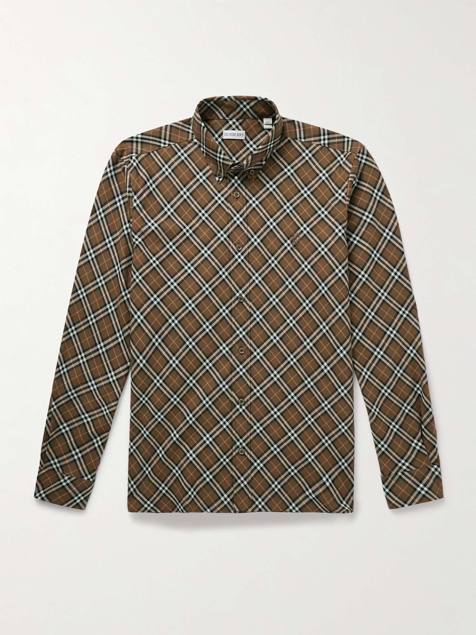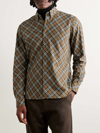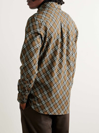 Button-Down Collar Logo-Embroidered Checked Cotton-Flannel Shirt