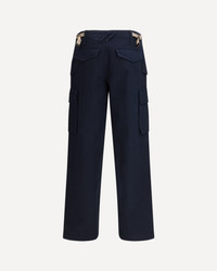 The cotton cargo Trousers by Burberry reinterpret utility style through an oversized silhouette and garment-dyed twill that creates a subtly washed, lived-in look. Adjustable waist tabs with signature B-shaped buckles and a strip of Archive Beige Burberry Check add unmistakable heritage detail. Finished with a button-and-zip closure and multiple flap pockets secured by press studs, these trousers blend function, identity, and contemporary volume. DETAILS - Sku: 8119203_C4008 - Season: SS26 - Fit: Regular - Composition: GENERAL 100% Cotton - MADE IN ITALY