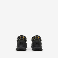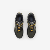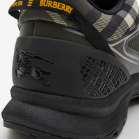 Product Details Inspired by hiking styles and our heritage of outdoor pursuits, the Discover sneakers are crafted in contrasting textures with mesh panels and a knitted cuff in thicket green Burberry Check. The style is finished with two-tone laces, a tonal Equestrian Knight Design applique and a heel strap with a raised logo print. - Lace-up closure - Raised Burberry lettering at front and tongue - Comes with a dust bag - Item 81215211 Fabric & Care - Upper: 42% polyamide, 30% polyester, 15% thermoplastic polyurethane, 8% elastane, 5% polyurethane - Trim: 55% polyester, 40% viscose, 5% brass - Lining: 69% polyester, 27% leather, 3% polyamide, 1% thermoplastic polyurethane - Sole: 65% thermoplastic polyurethane, 35% EVA - Made in Italy
