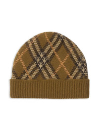 check beanie Highlights - Mustard yellow - Cashmere blend - Intarsia knit - Nova check pattern - Round crown - Ribbed turn-up brim Made in United Kingdom Composition Cashmere 90%, Polyamide 8%, Polyester 2%