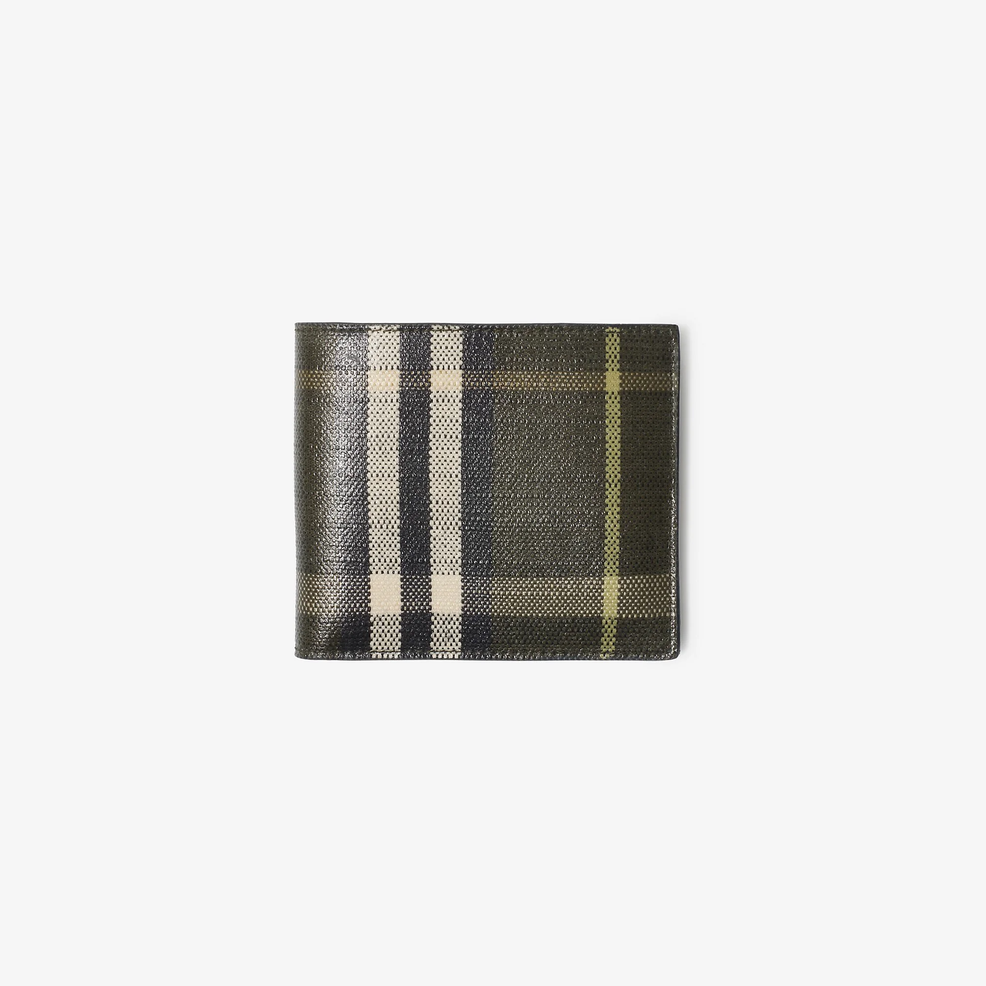 Product Details A bifold wallet made from a cotton linen blend backed in supple leather. The fabric is jacquard-woven with the Burberry Check and has a coated finish inspired by rainwear. - Eight card slots - Note compartment with divider - Two slip pockets - Hand-painted edges - Embossed Burberry lettering at inner - Comes with a dust bag - Item 81188381 Size & Fit - 9.5 x 11cm/3.7 x 4.3in Fabric & Care - Outer: 69% cotton, 21% viscose, 10% linen - Linings: 100% lambskin; 53% cotton, 47% polyurethane - Imported