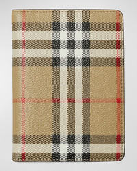 Burberry passport holder in check faux leather (nylon/polyamide), Bifold construction Interior, four card slots and one slip pocket Handpainted edges Lining: Leather Approx. 5.3"H x 3.9"W Made in Italy