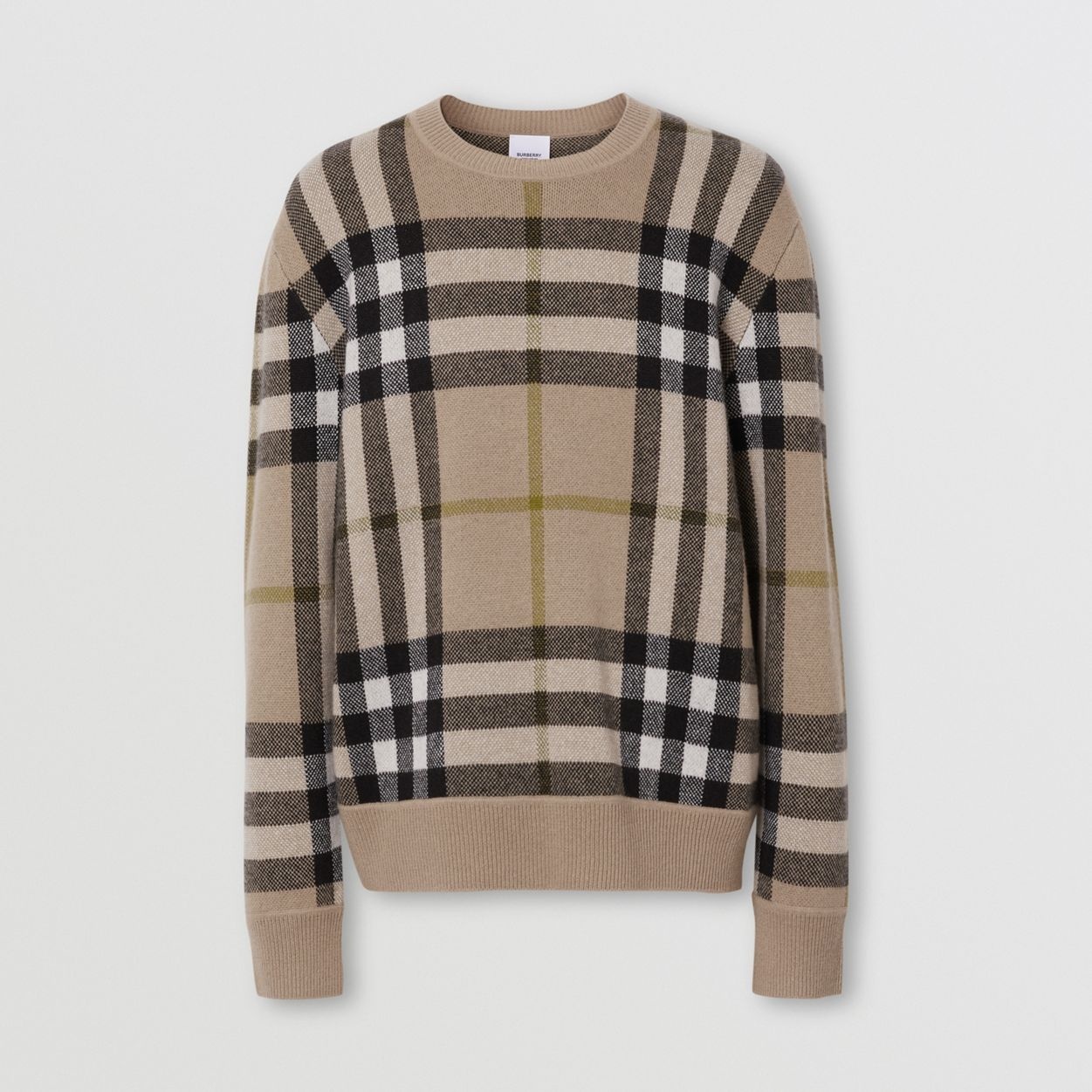 PRODUCT DETAILS A cashmere sweater in jacquard-woven check, finished with chunky rib-knit trims. Sweater length: 70cm/27.6in. This is based on a size UK M as proportions change slightly according to size. Model’s height: 191cm/6ft 3in. Model wears size UK M. 100% cashmere Trims: 96% wool, 3% polyamide, 1% elastane Specialist dry clean Imported 80412861