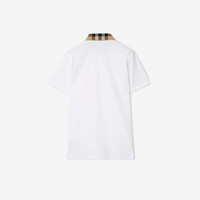Product Details A polo shirt in cotton pique, cut to a slim fit and detailed with a Burberry Check collar. - Button placket - Rib-knit cuffs - Slim fit: this style is cut to a fitted silhouette. Fits true to size, take your normal size. - Machine wash - *Containing organic cotton - Item 80716211 Size & Fit - Length: 75cm/29.5in (size UK M) - Model’s height: 190cm/6ft 3in. Model wears size UK M Fabric & Care - 100% cotton* - Trims: 100% cotton; 96% cotton, 4% elastane - Made in Portugal