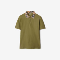 Product Details A polo shirt in lightweight Italian-woven cotton pique. The design is cut to a slim fit and knitted with our Burberry Check at the collar. - Button placket - Slim fit: this style is cut to a fitted silhouette. Fits true to size, take your normal size. - Machine wash - Item 81109461 Size & Fit - Length: 70cm/27.6in (size UK M) - Model’s height: 190cm/6ft 3in. Model wears size UK M Fabric & Care - 100% cotton - Collar: 100% cotton - Buttons: mother-of-pearl - Made in Portugal