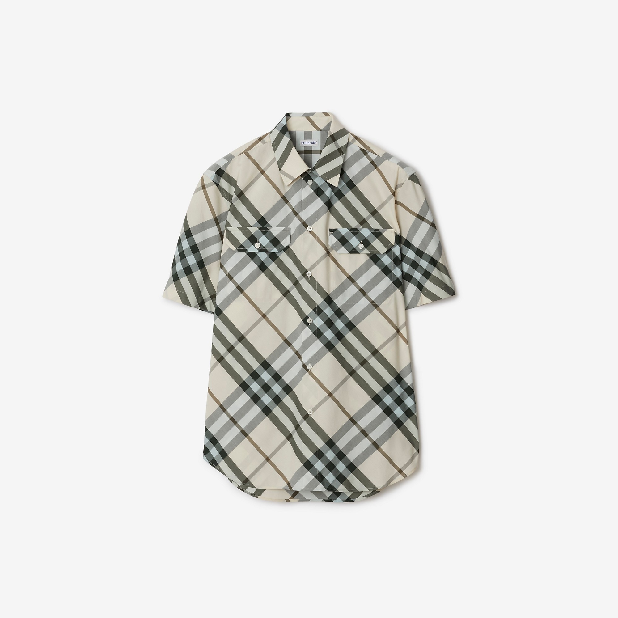 PRODUCT DETAILS A short-sleeved shirt in cotton woven with the Burberry Check. The design is tailored to a relaxed fit. - Length: 83.5cm/32.9in (size UK L) - Model’s height: 188cm/6ft 2in. Model wears size UK L Relaxed fit: a looser cut than our regular fit. Consider taking a size down. 100% cotton Buttons: mother-of-pearl Specialist dry clean Imported Item 80873251