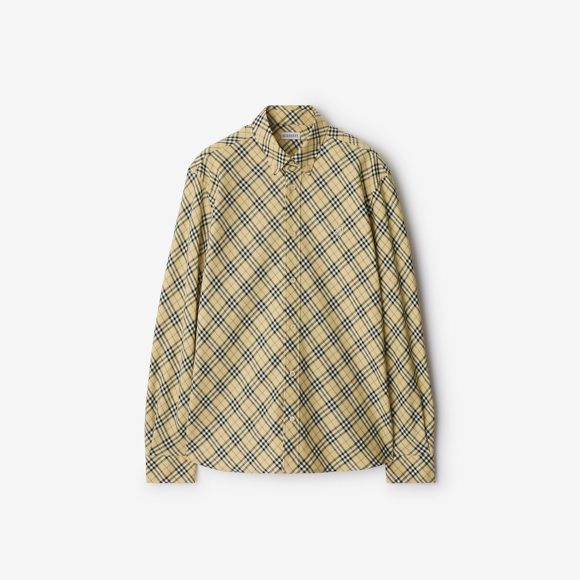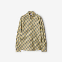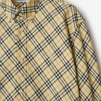 Product Details A shirt made from Italian-woven washed cotton twill, patterned with the Burberry Check. The lightweight style is cut to a regular fit and embroidered with our B shield, a motif inspired by the Equestrian Knight Design. - Button closure - Button-down collar - Single-button cuffs - Curved hem - Embroidered B shield at chest - Regular fit. Fits true to size, take your normal size. - Item 80988431 Size & Fit - Length: 78cm/30.7in (size UK L) - Model’s height: 186cm/6ft 1in. Model wears size UK L Fabric & Care - 100% cotton - Buttons: mother-of-pearl - Specialist dry clean - Imported