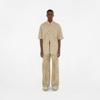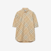 PRODUCT DETAILS A short-sleeved shirt in Burberry Check cotton twill, embroidered with the Equestrian Knight Design. The style is cut to an oversized fit with a button-down collar. - Length: 84.3cm/33.2in (size UK M) - Model’s height: 188cm/6ft 2in. Model wears size UK L Oversized fit 100% cotton Buttons: mother-of-pearl Specialist dry clean Imported Item 80824781